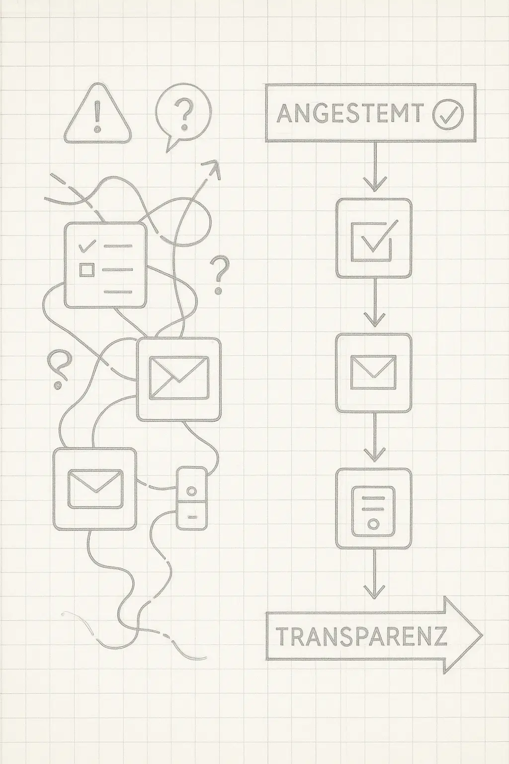 Nein. In über 80 % der Fälle arbeiten wir mit den bestehenden Tools - wir nutzen sie nur gezielter. Der Fokus liegt auf Klarheit und Verantwortlichkeiten, nicht auf technischer Erneuerung.